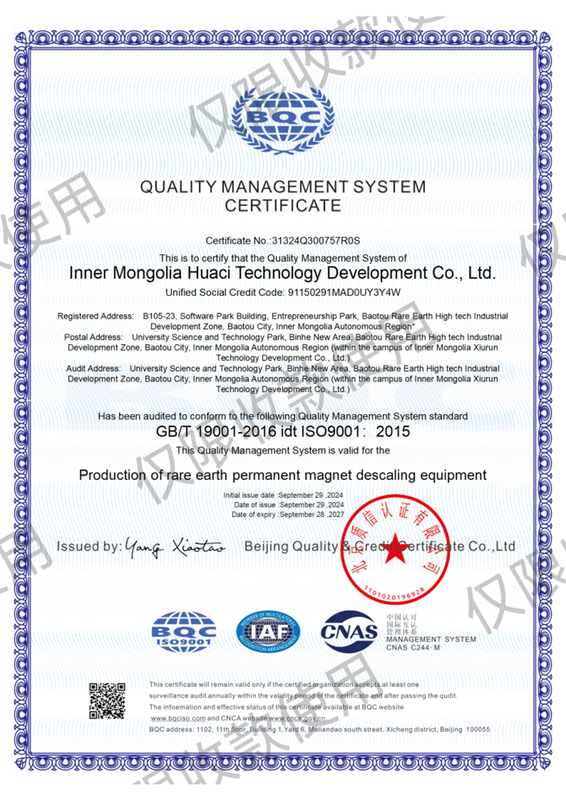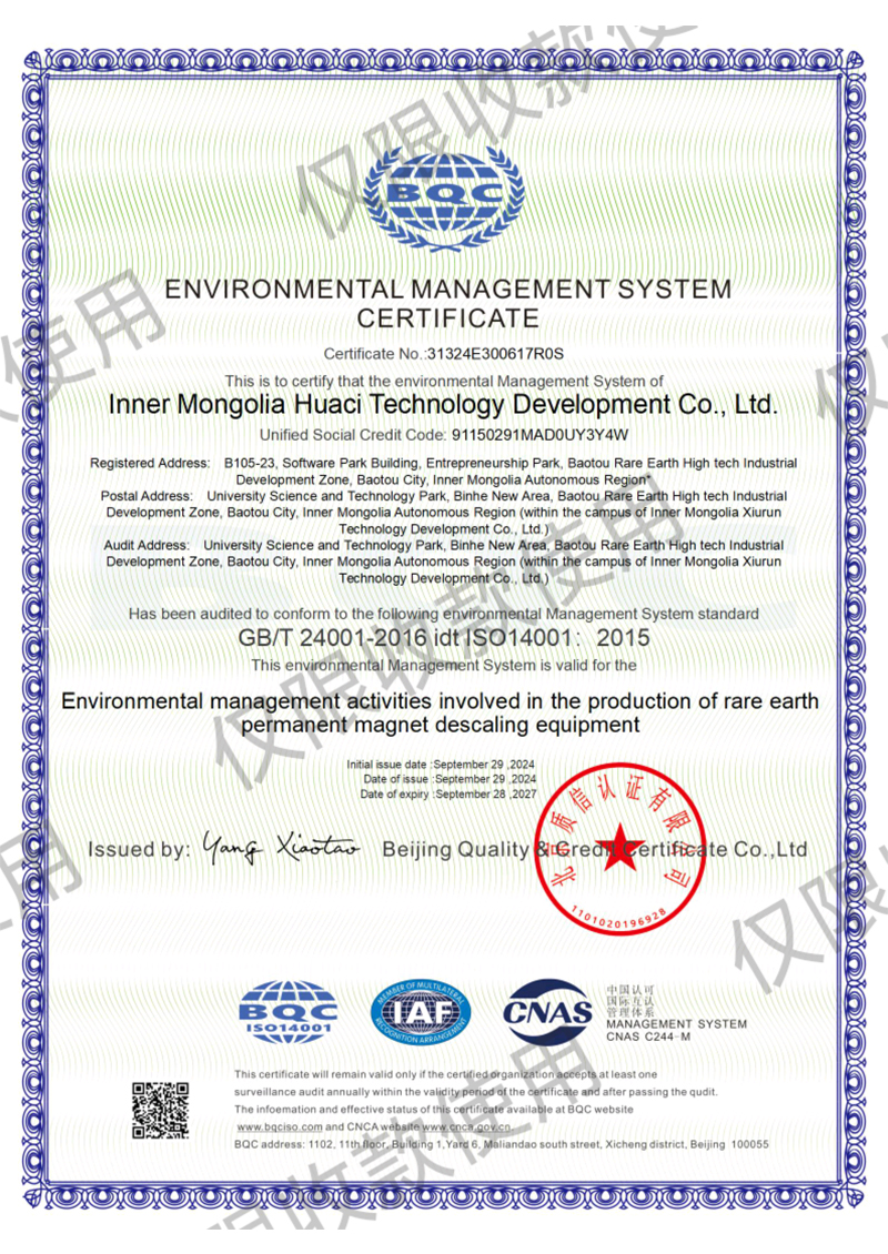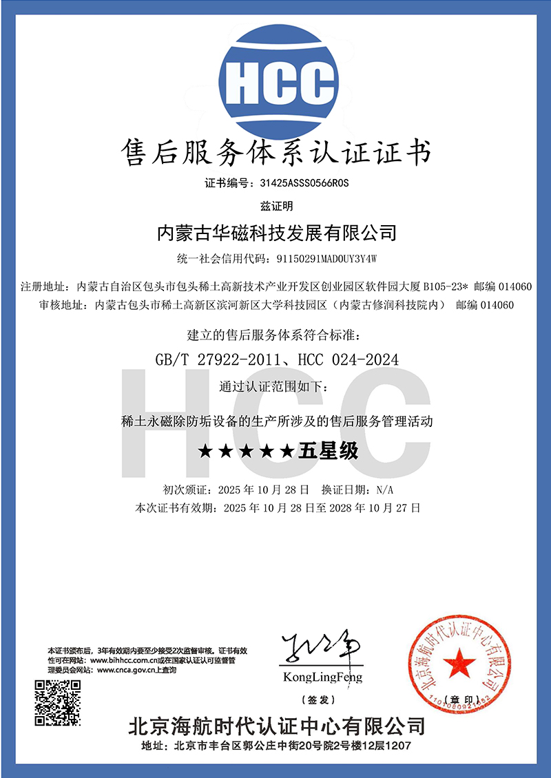 Являясь технологически ориентированным предприятием, компания ООО Внутренняя Монголия Хуачи Научно-техническое Развитие использует редкоземельные магнитные материалы в качестве своей основной технологии, специализируясь на разработке и промышленном внедрении технологий предотвращения и удаления накипи в системах циркуляционной воды. Компания предлагает физические, не требующие применения химических реагентов и не требующие технического обслуживания решения для предотвращения и удаления накипи для промышленных циркуляционных систем, нефтегазовых месторождений, систем отопления и других сценариев применения. По сравнению с традиционными химическими методами удаления накипи, продукция компании благодаря эффекту сильного редкоземельного магнитного поля позволяет эффективно подавлять образование накипи и удалять старые отложения, а также адаптирована к экстремальным условиям эксплуатации, таким как высокие температуры, высокое давление, низкие температуры и коррозионные среды. Продукция сочетает в себе экологичность, стабильность и долговечность, позволяет значительно снизить эксплуатационные расходы и энергопотребление оборудования клиентов, способствуя экологически чистой и высокоэффективной трансформации промышленного производства.